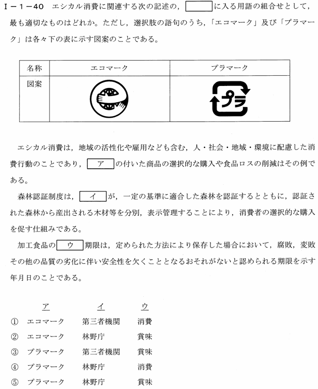 【社会環境管理 択一式問題】