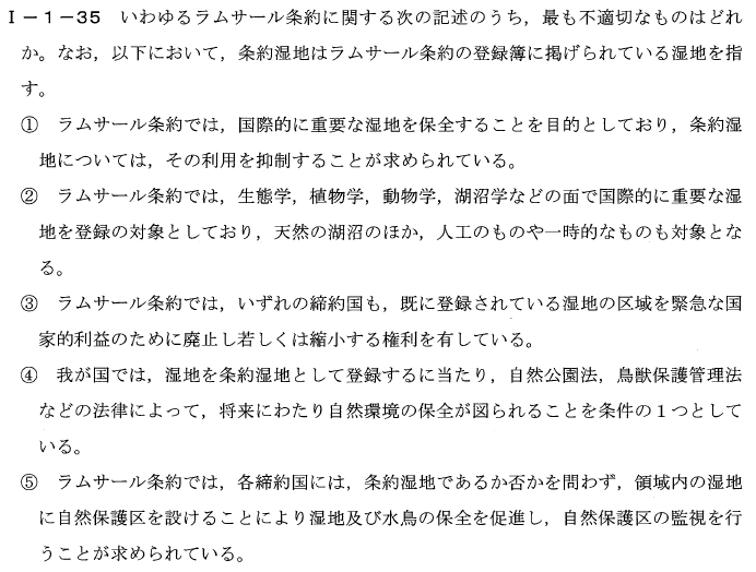 ラムサール条約は湿地の「保全」と「賢明な利用」を目的としていますが、「利用を抑制する」ことが直接求められているわけではありません。