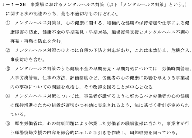 この設問は、指針に基づく事業者のメンタルヘルス対策を「努めるべき」としていますが、実際には事業者に対する義務が課されているため、不適切な表現となります。
