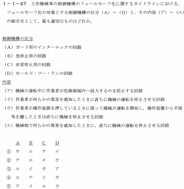 内容(エ):「機械側で何らかの異常を感知したときに,直ちに機械の運転を停止させる回路」