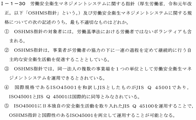 この記述はOSHMS指針の対象範囲外の内容を含んでいるため、不適切です。