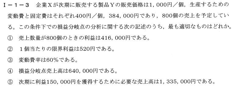 限界利益率 = 限界利益 ÷ 販売価格 = 600 ÷ 1,000 = 0.6(60%)