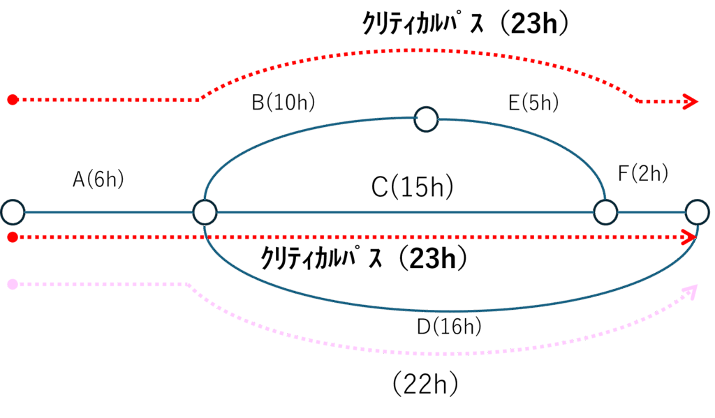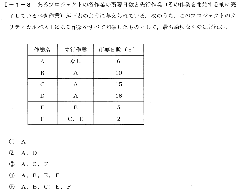 → 本問では A-B-E-F および A-C-F の2系統がクリティカルパス。