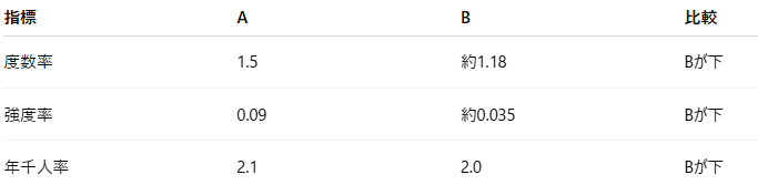 延労働時間 → 指標の倍率(100万・1000・1000)を取り違えないことが最大の注意点です。