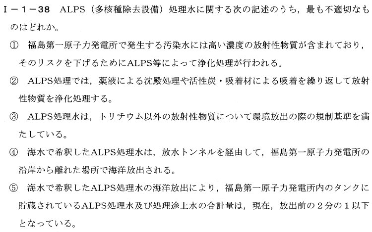 本問は ALPS処理水に関する事実関係の正確さを問う問題で、